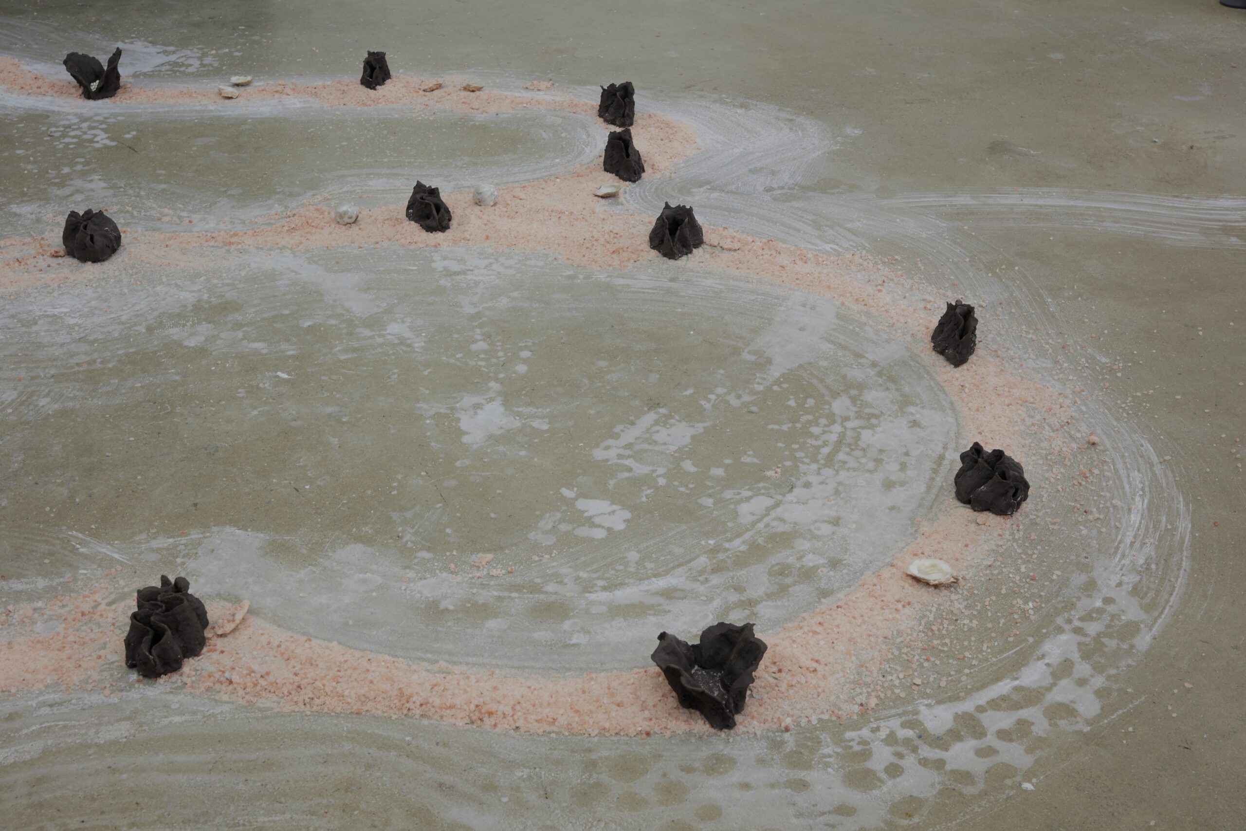 view of URNAS OSTRA, 2024. ostrea chilensis, clay, salt, chalk and water.
